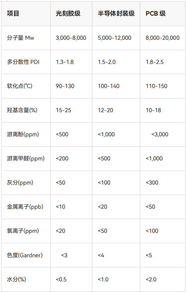 ✓ 超高纯度 游离酚<500 ppm, 游离甲醛<200 ppm, 满足光刻胶级要求