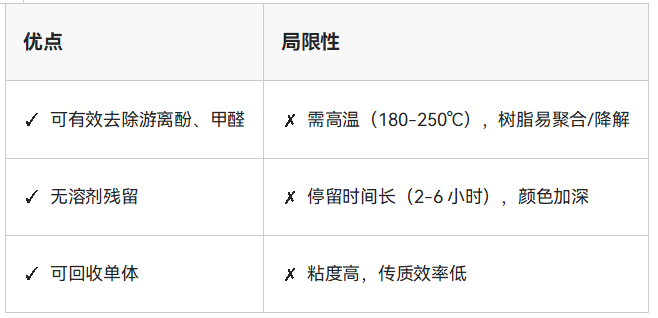 1. 游离酚与游离甲醛去除 未反应的单体残留影响树脂性能和安全性