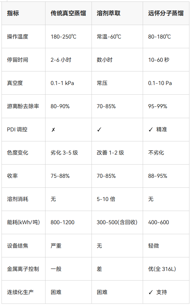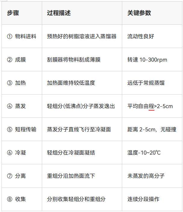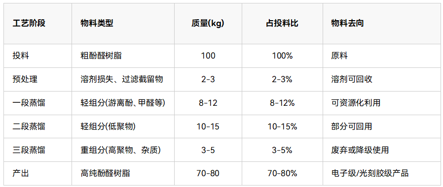 【工艺流程】 树脂熔融 → 减压蒸馏(0.1-1 kPa) → 收集馏分