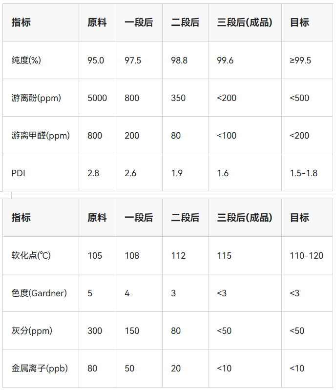目标:光刻胶级(纯度≥99.5%, 游离酚<500 ppm, PDI 1.5-1.8)