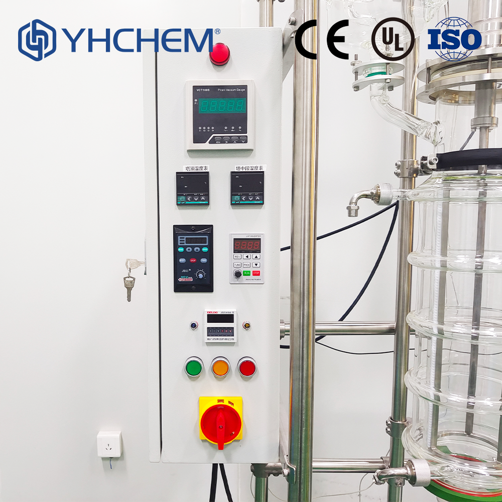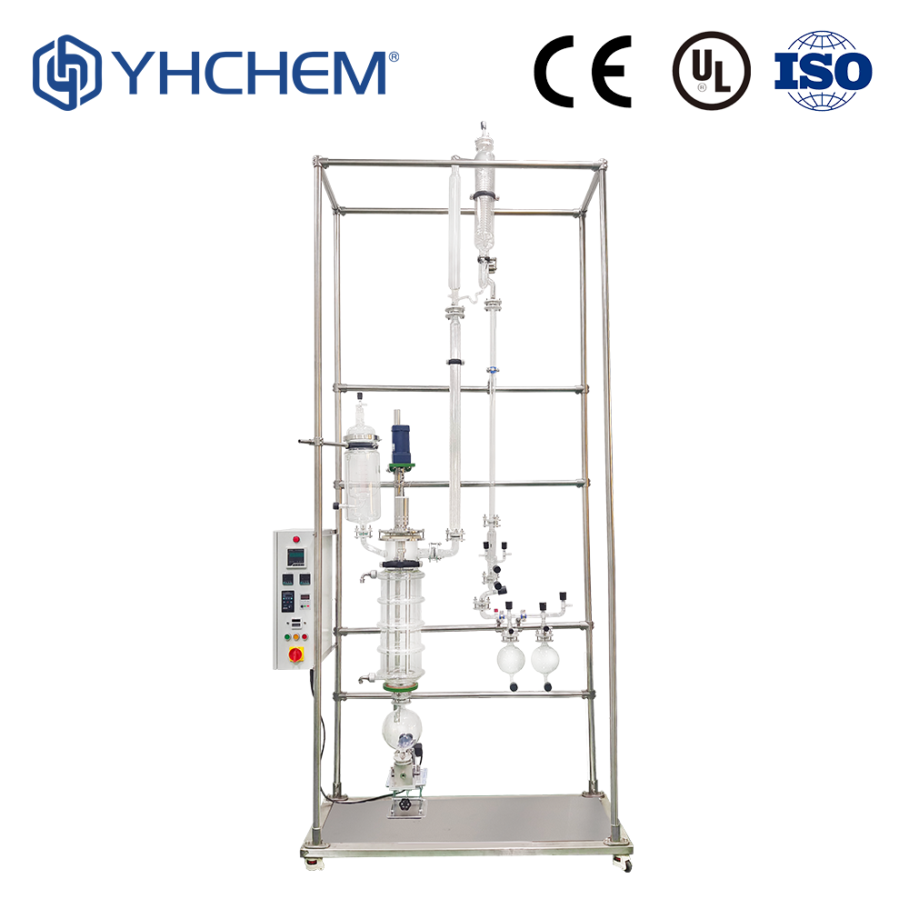 薄膜精馏塔是薄膜蒸发器和精馏塔耦合的装置,在精馏过程中,薄膜精馏塔可以解决热敏性物料由于塔釜温度过高和在再沸器里停留时间过长而导致物料热分解的问题。防止了物料遇热发生分解、聚合、氧化等变质反应,有效地保护产品物料的特性;同时薄膜精馏塔相比于传统的薄膜蒸发器,增加精馏的功能,能够更好地提升产品的纯度,减少了更多的提纯工艺步骤。薄膜精馏塔的负压、刮膜和精馏的优良特点可以广泛应用于生物制药、食品领域、植物提取和化工等行业。