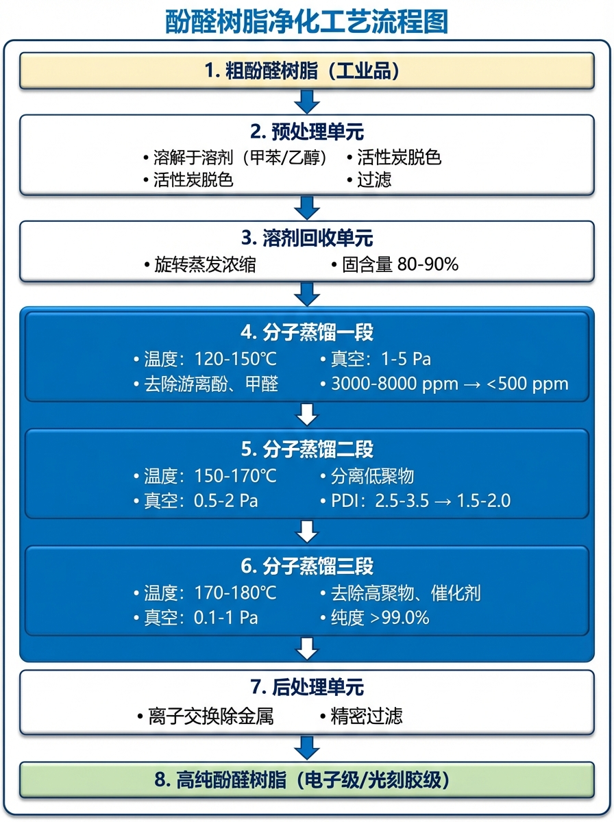 目标:光刻胶级(纯度≥99.5%, 游离酚<500 ppm, PDI 1.5-1.8)